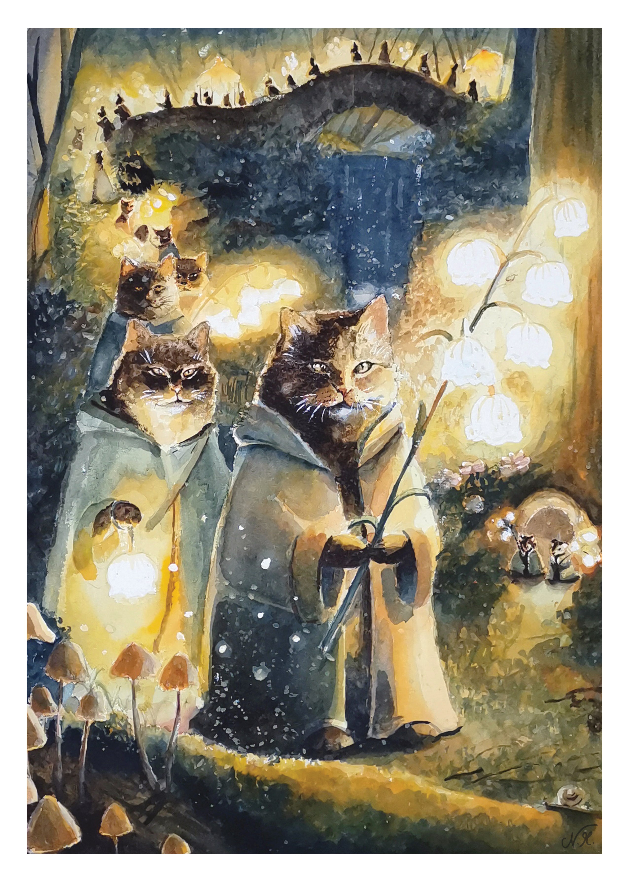 Lichterfest der Katzen | Kunstdruck mit Passepartout | DIN A 4