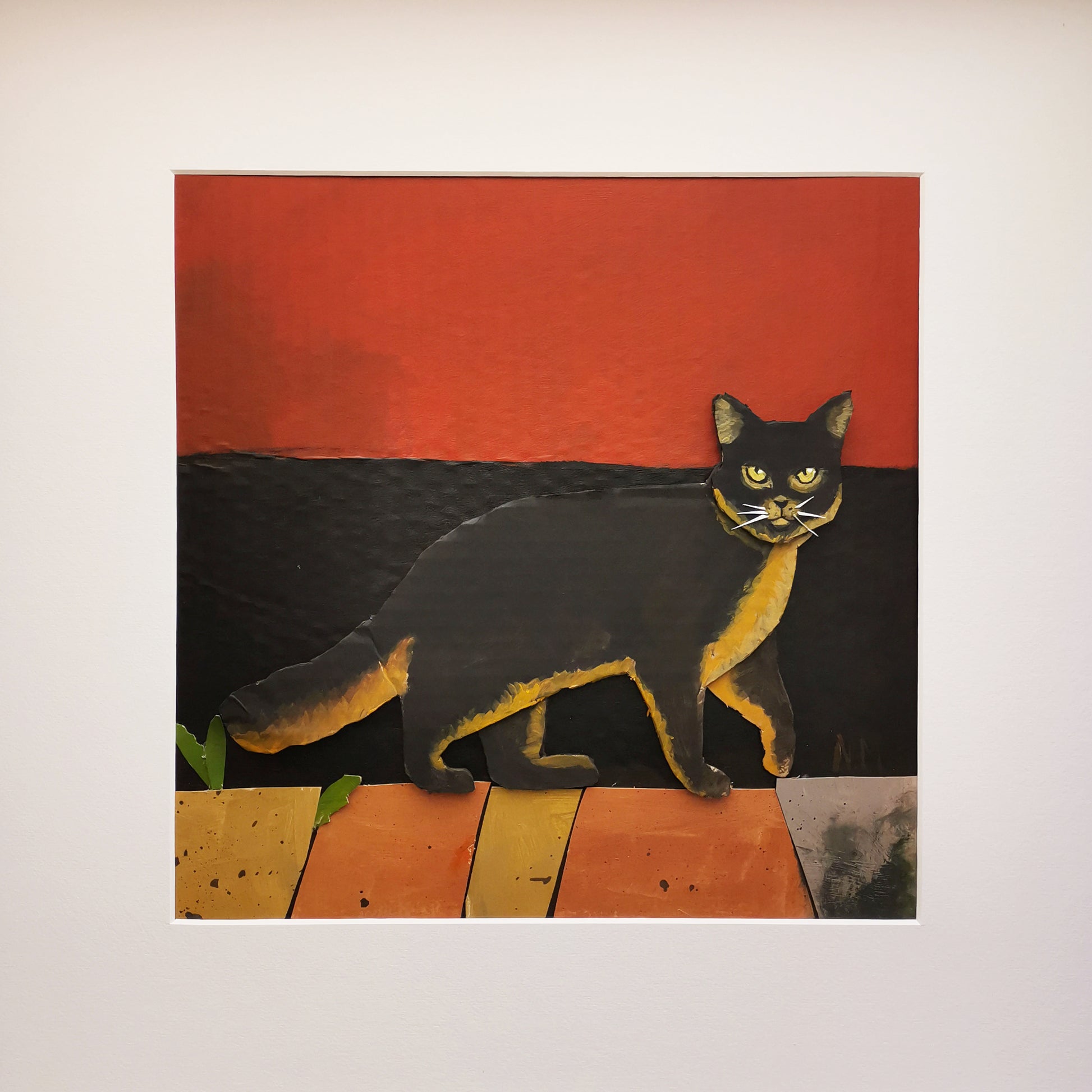 The cat is created from several layers of painted cardboard, giving it a special depth. Each piece is unique, handmade, and crafted with great attention to detail.