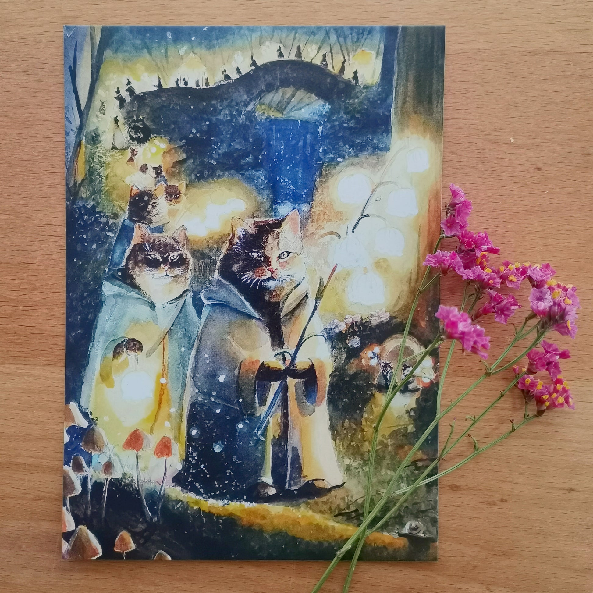 The enchanting Dreamscape Set. A beautiful collection featuring cats, night lights, and the sea. Poetic motifs full of magic and atmosphere. The postcards are taken from original oil or watercolor paintings.